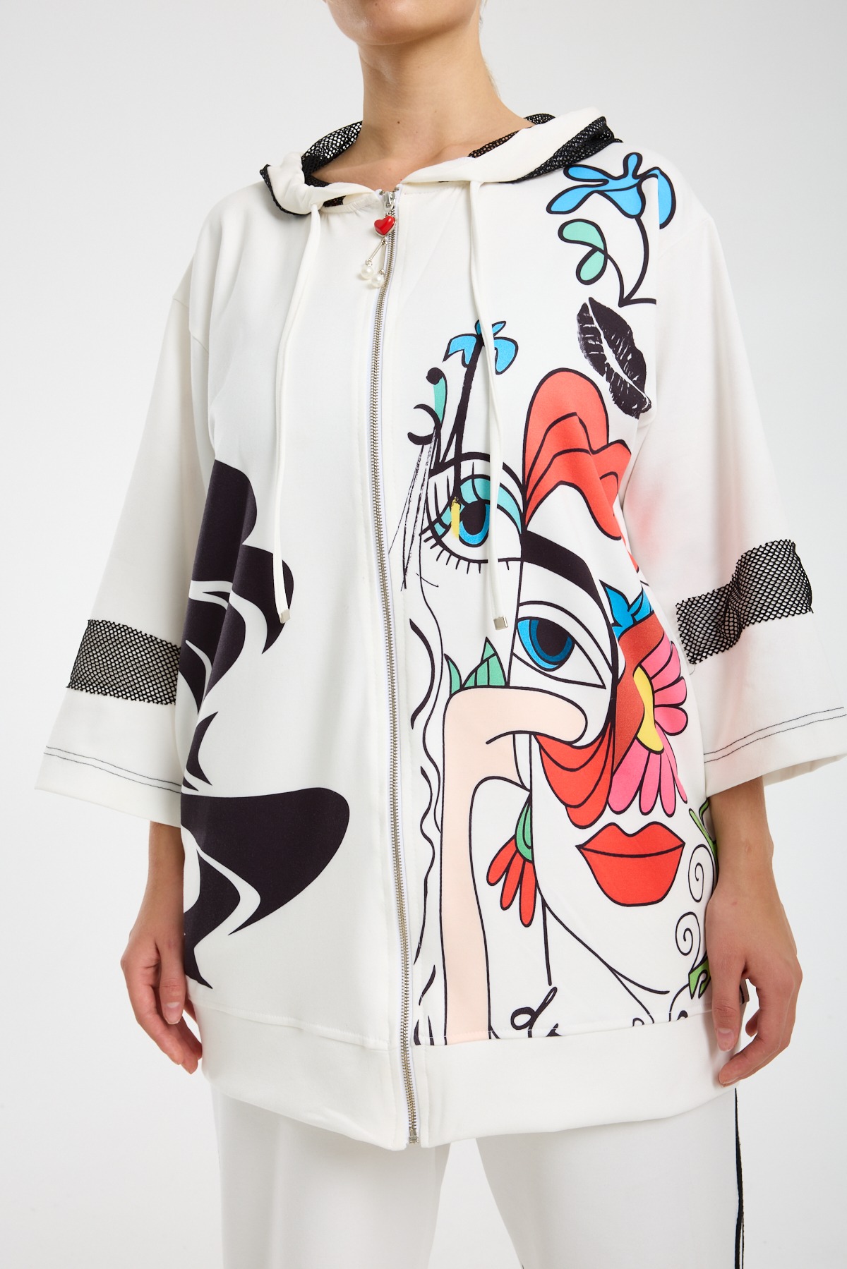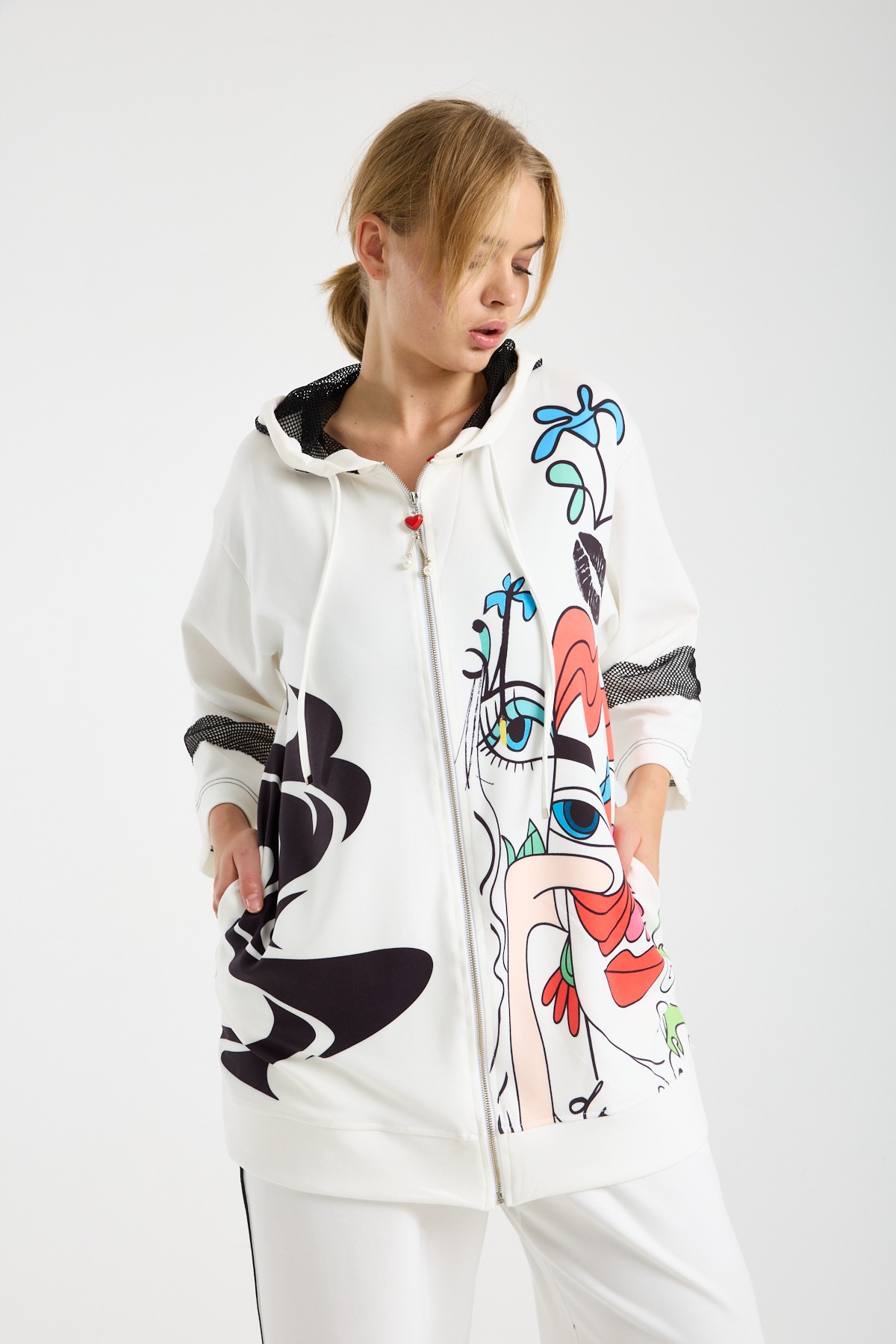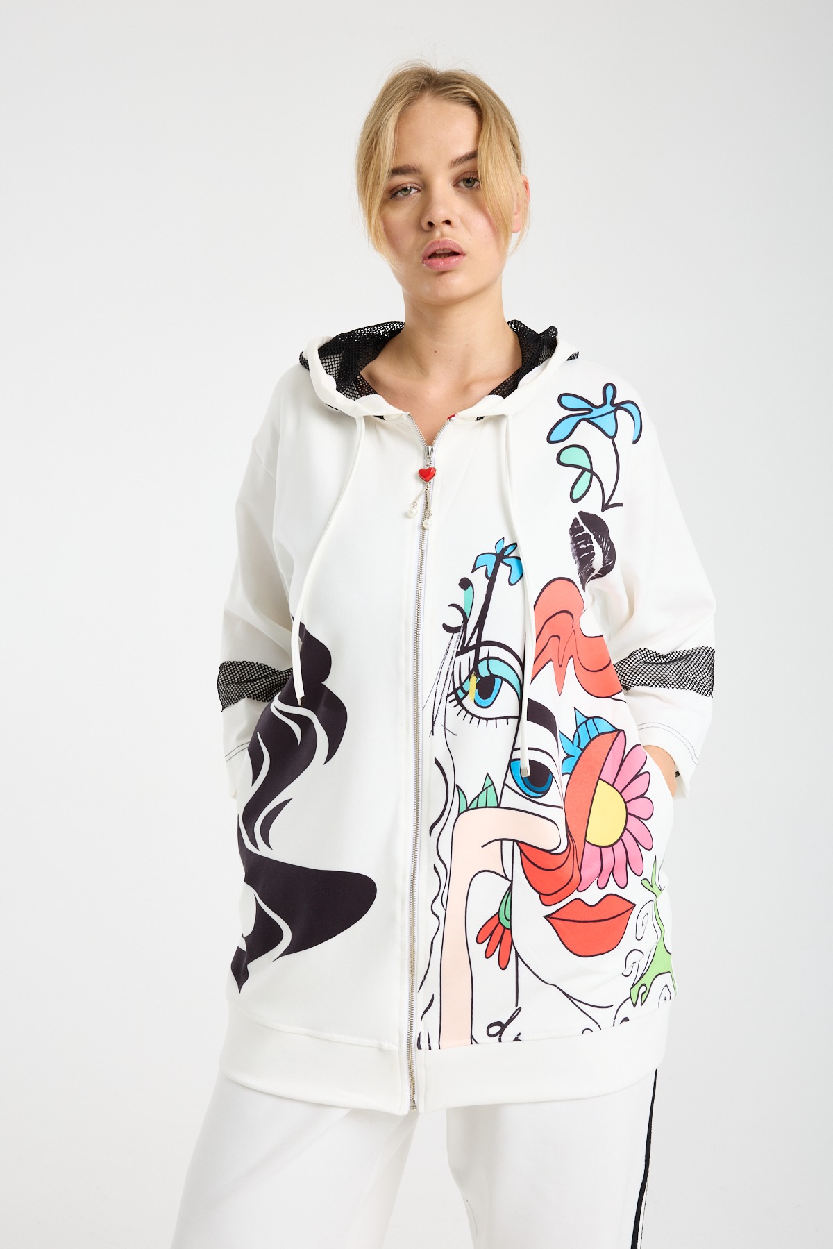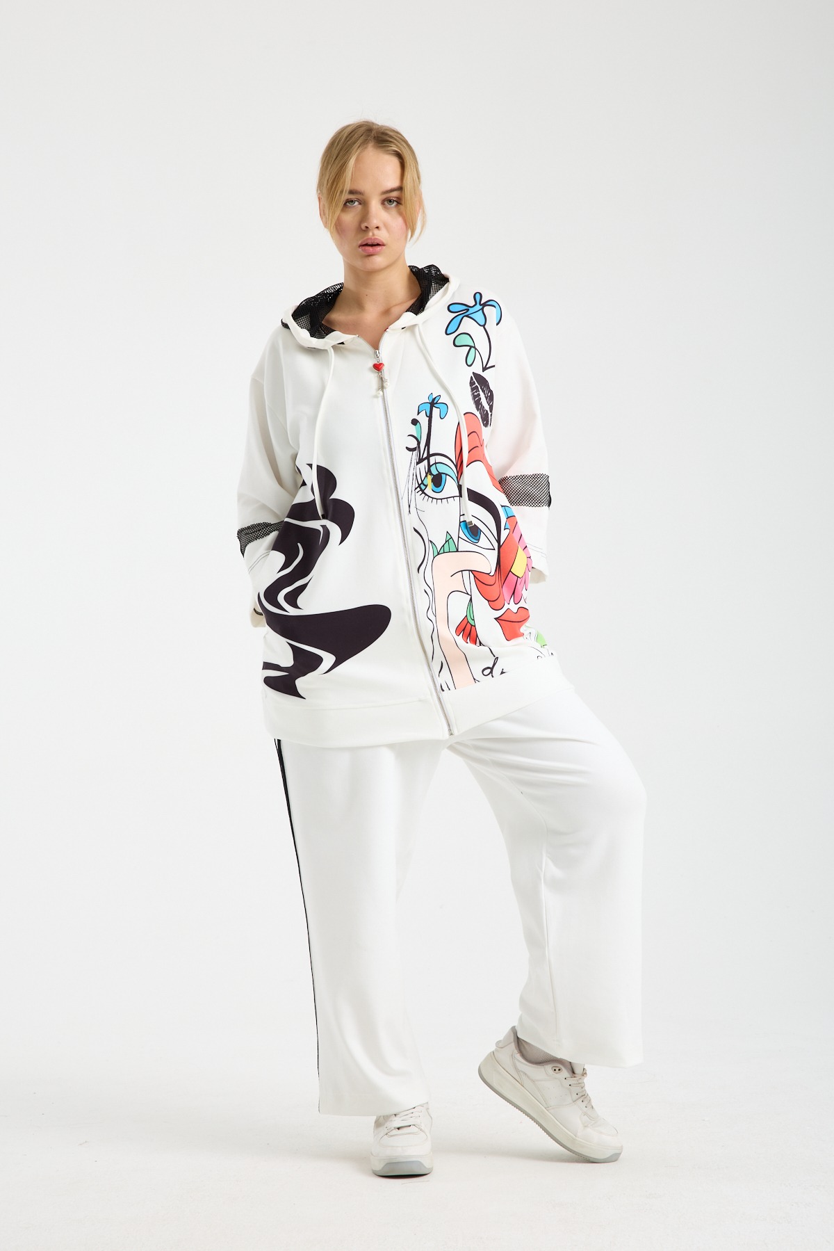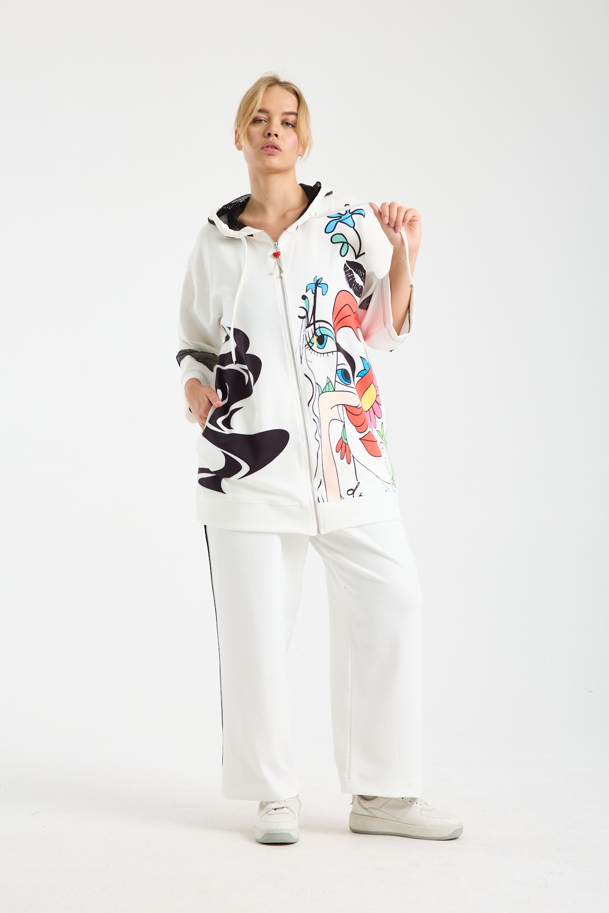 Kadın Büyük Beden Pop-Art Desenli Fermuarlı İkili Takım
