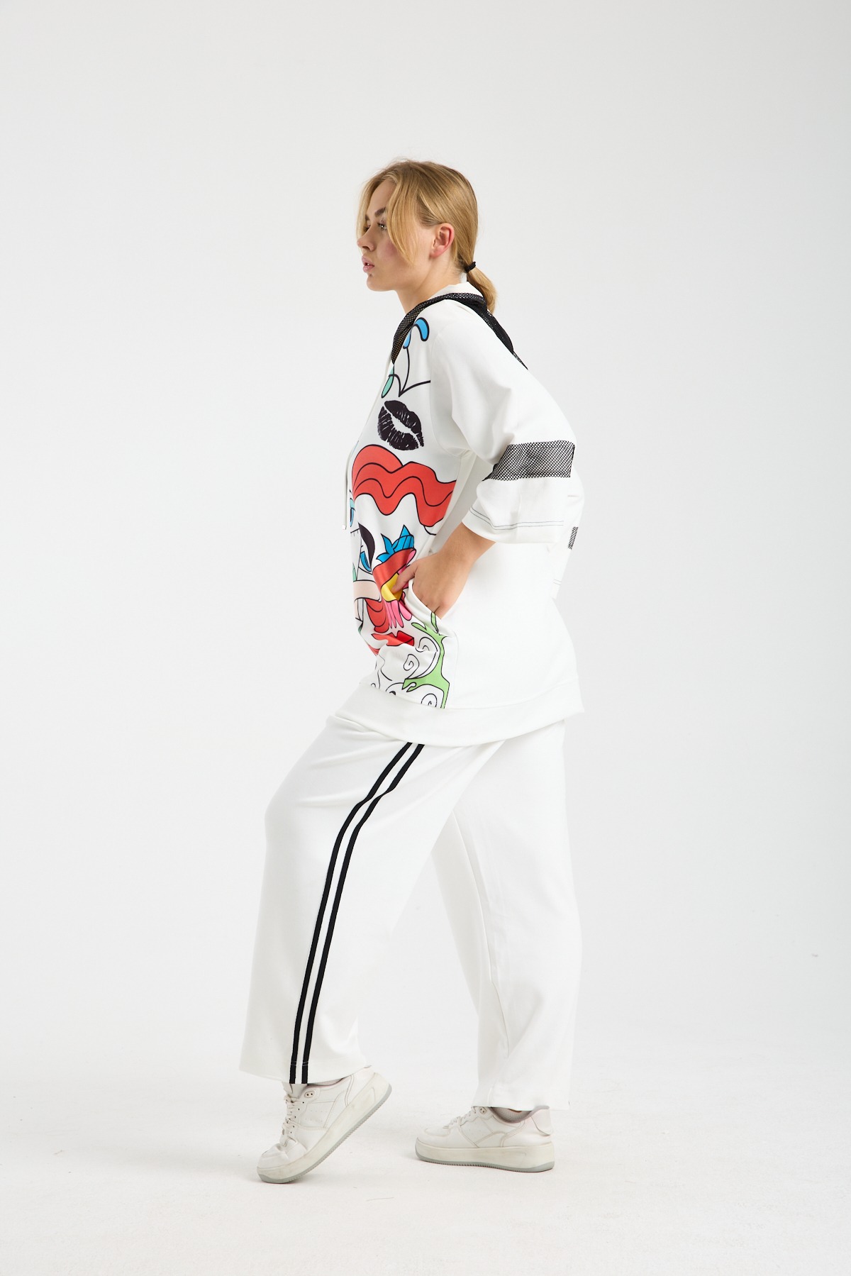 Modern Sanat ve Konfor Bir Arada! Yeni sezonun en dikkat çekici parçası olan büyük beden ikili takım, sanatsal pop-art baskısı ve modern detaylarıyla stilinizi yeniden tanımlıyor. Günlük hayatınızda hem konforlu hissetmek hem de tarzınızla fark yaratmak istiyorsanız bu kombin tam size göre.